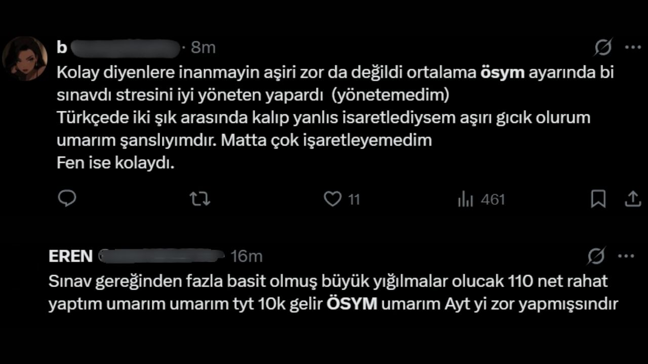 🔸"Kolay diyenlere inanmayin aşırı zor da değildi ortalama ösym ayarında bi sınavdı stresini iyi yöneten yapardı (yönetemedim)