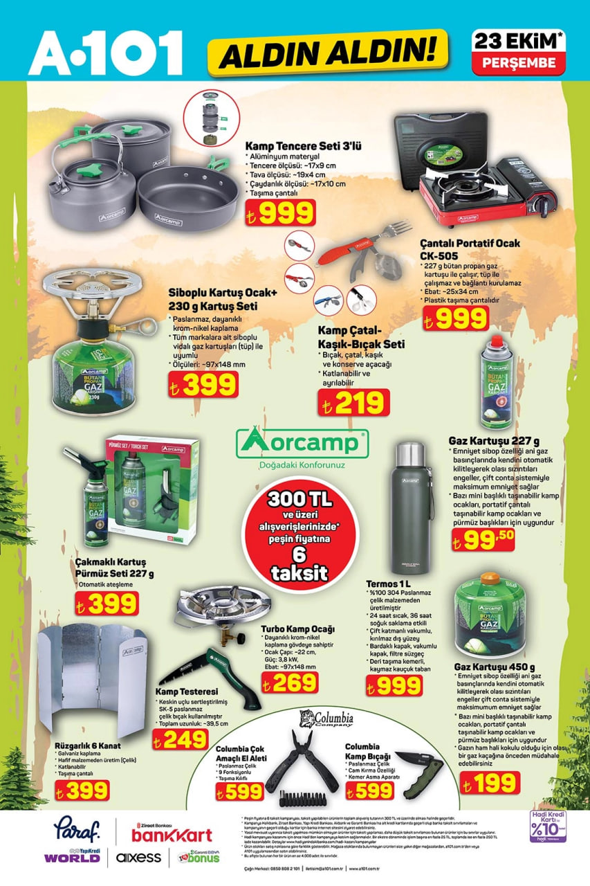 23 Ekim A101 aktüel kataloğu satışta: Yaz kış kamp yapanlara fırsat ürünler A101’de! Portatif ocak ve termos 999 TL