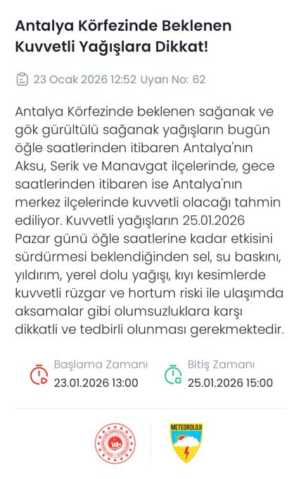Marmara'nın batısı, Kıyı Ege, Antalya, Osmaniye ve Hatay çevrelerinde yağışların yer yer kuvvetli olması bekleniyor. Bu bölgelerde kısa sürede etkili olabilecek sağanakların ulaşımda aksama ve su baskını riskini artırabileceği belirtiliyor.