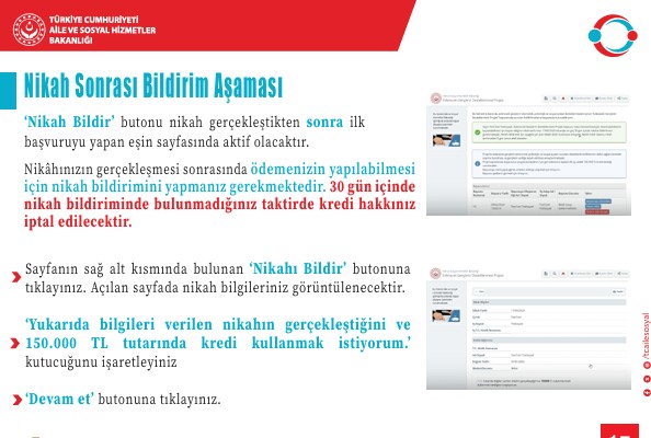 "Ayrıca 48 ay içerisinde çocuk sahibi olan genç çiftlerimizin talep etmeleri durumunda her çocuk için geri ödemelerini 12 ay erteliyoruz. Çiftlerin başvurudan önceki 6 aylık ortalama geliri asgari ücretin 2,3 katı olması şartı 2,5 katına çıkartıldı. Hayırlı uğurlu olsun diyorum."