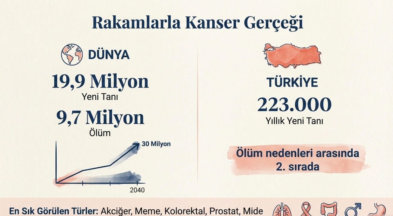 Kanser, hem dünyada hem de Türkiye'de ölüm nedenleri arasında ikinci sırada bulunmaktadır. Veriler, yaklaşık her 6 ölümden birinin kanser kaynaklı olduğunu göstermektedir. Dünya genelinde her yıl yaklaşık 19,9 milyon kişiye kanser tanısı konulurken, 9,7 milyon kişi kanser nedeniyle yaşamını yitirmektedir.