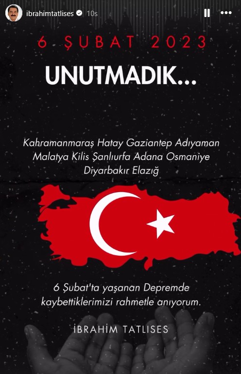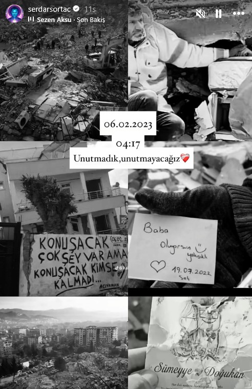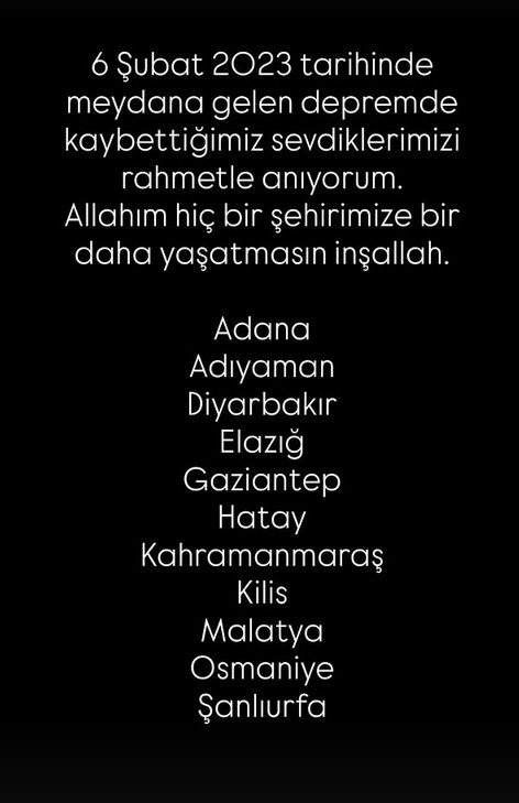 Başta depremden ağır şekilde etkilenen 11 ilde olmak üzere tüm Türkiye, yaşanan büyük kaybın yasını tutuyor. Sanat dünyasının birçok ünlü ismi de sosyal medya hesaplarından duygusal paylaşımlar yaptı.