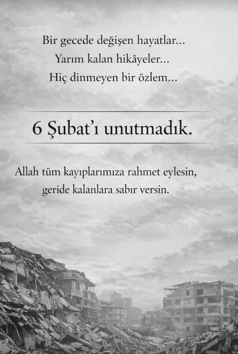 Türkiye'yi yasa boğan 6 Şubat 2023 depremlerinin üçüncü yıl dönümünde acımız bir kez daha tazelendi. 11 ilde büyük yıkıma neden olan ve 53 binden fazla vatandaşın hayatını kaybettiği "asrın felaketi", ülke genelinde anma mesajlarıyla hatırlandı. Sanat dünyasından birçok ünlü isim de bu anlamlı günde sessiz kalmadı.