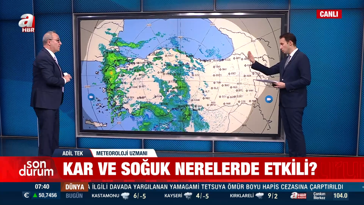 Adil Tek'in verdiği bilgilere göre İç Anadolu'nun doğusunda, Yozgat, Kayseri, Niğde ve Aksaray çevrelerinde kar yağışı sürüyor. Doğu Anadolu'da ise Ardahan'da sıcaklıkların -28 dereceye kadar düştüğünü belirten Tek, soğuk havanın etkisini koruduğunu söyledi.