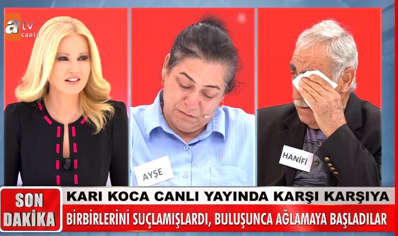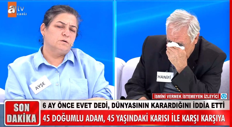 Dolandırıldığını düşünen Hanife Amca Müge Anlı'dan yardım istedi. İddiaların odağındaki eş Ayşe Hanım canlı yayına geldi. Hanifi Bey'in davranışlarından rahatsız olduğunu ve o yüzden evi terk ettiğini söyledi.