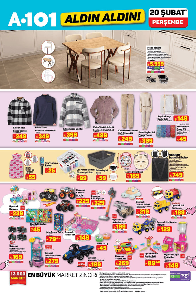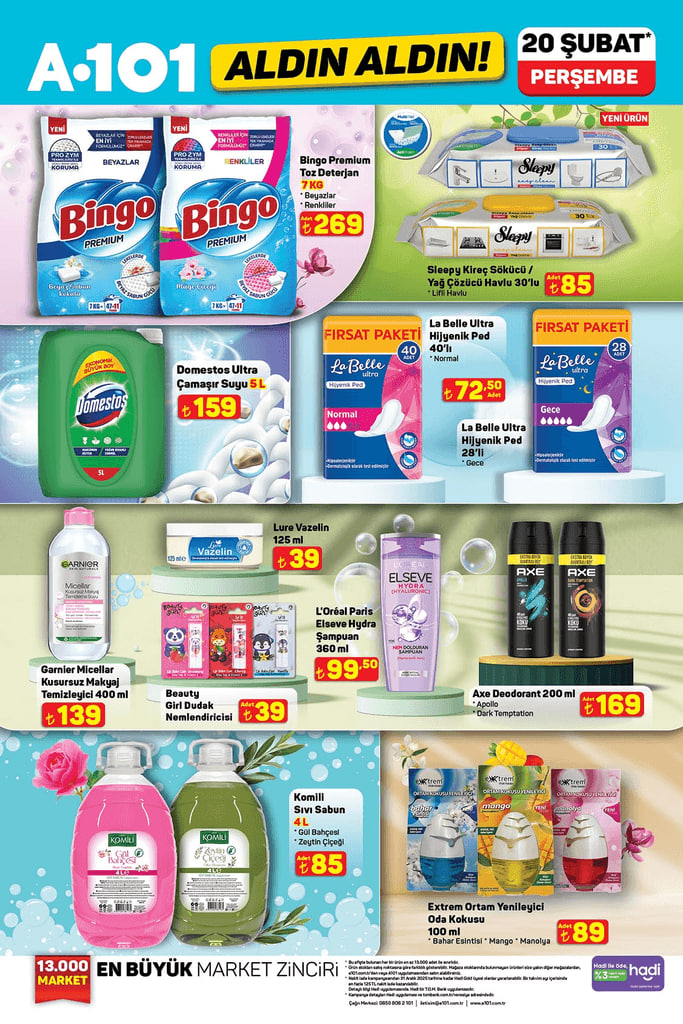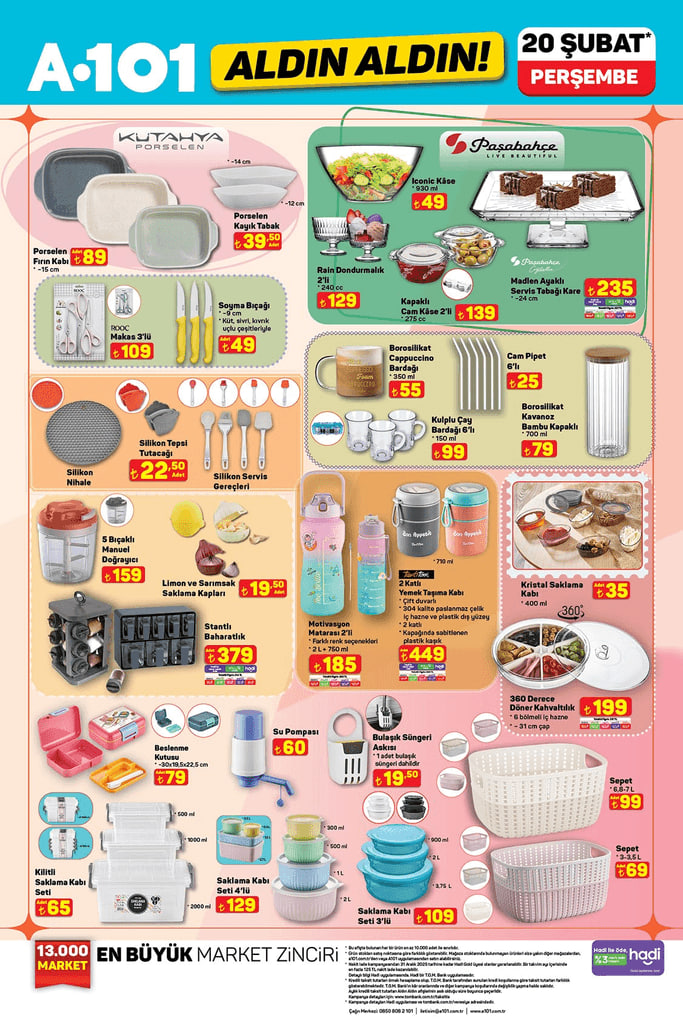 20 Şubat A101 aktüel kataloğu yayınlandı. Her Perşembe olduğu gibi, 20 Şubat 2025 tarihinde de A101 Aldın Aldın ürünleri, avantajlı fiyatlarla tüm müşterilere sunuluyor. Ev-yaşam ve gıda kategorisinde Ramazan'a özel indirimler yer alıyor. Peki bu haftanın öne çıkan indirimli ürünleri neler? İşte A101 Aldın Aldın katalog listesi…