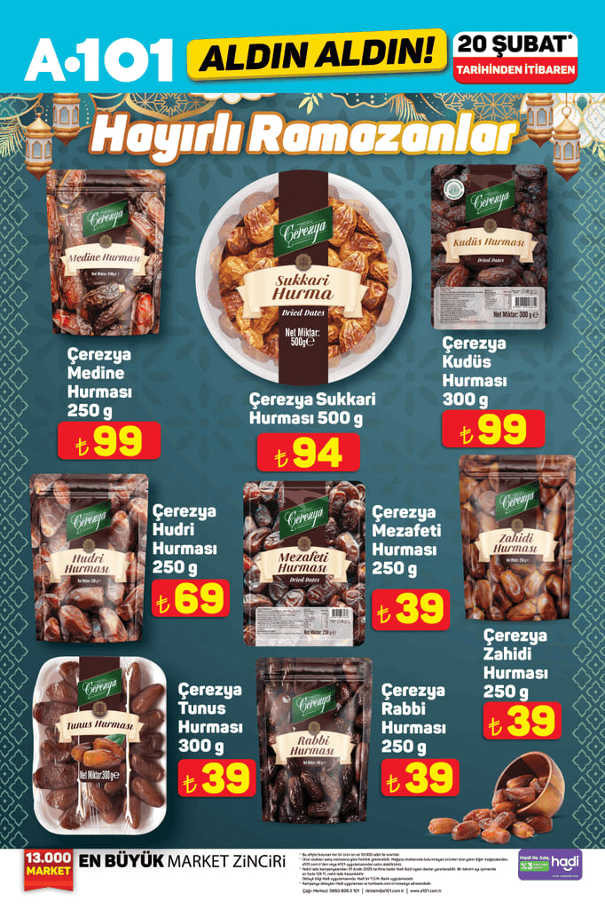 A101 20 Şubat Aldın Aldın kataloğu | Ramazan’a özel indirimler: Güllaç, hurma, yoğurt, şeker