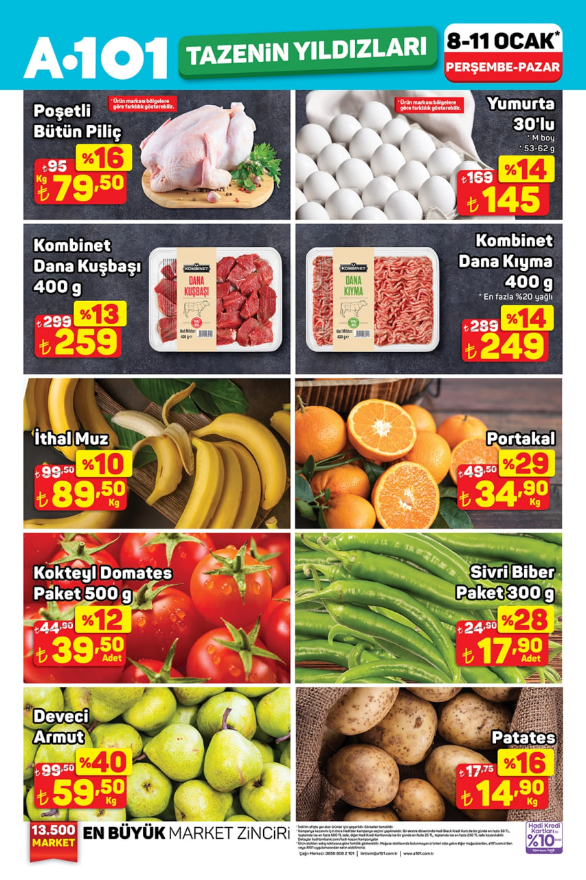 Perakende market zinciri A101, 10-16 Ocak 2026 tarihleri arasını kapsayan Haftanın Yıldızları kataloğunu yayınladı. Kampanyada gıda, temizlik, süt ürünleri ve günlük ihtiyaç ürünlerinde dikkat çeken fiyatlar yer alıyor. Her hafta olduğu gibi bu dönemde de aktüel ürünler sınırlı sayıda ve indirimli fiyatlarla satışa sunuluyor.