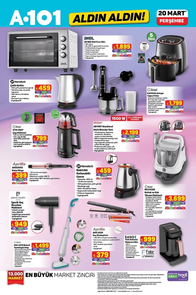 A101 20 Mart 2025 tarihi itibariyle yeni aktüel indirim kataloğunu yayınladı. Ramazan Bayramı öncesi bayram şekerlerini raflardaki yerini aldı. İşte A101'in yeni haftada sunduğu fırsatlar ve indirimler...