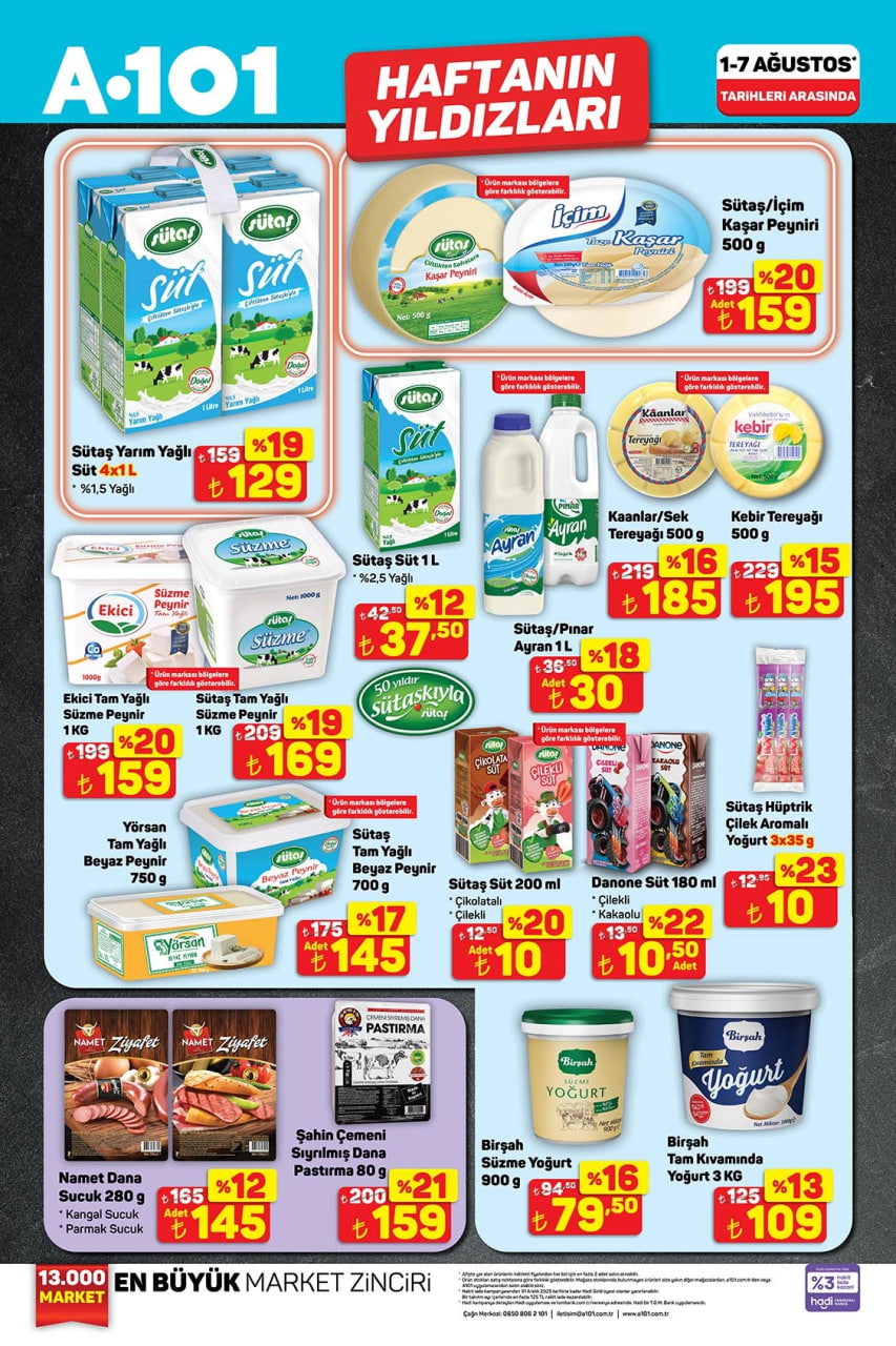 A101'de indirim fırtınası başladı! A101 1-7 Ağustos Haftanın Yıldızları kataloğu satışta: Peynir, süt, yağ, çay, şeker, yumurta