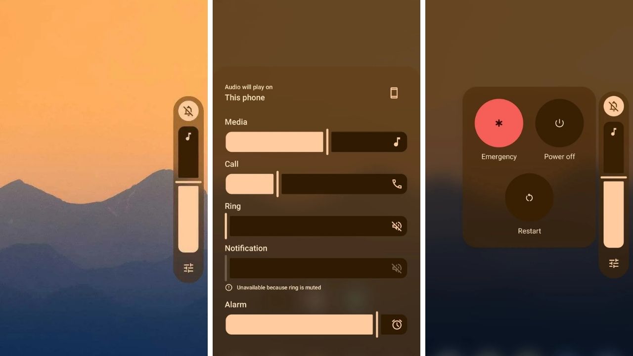 Android 17 ile birlikte sistem genelinde blur efekti kullanımı artıyor. Özellikle ses kontrol panelinde düz arka plan yerine yarı saydam bir tasarım tercih ediliyor. Arka plandaki duvar kağıdı hafif şekilde görünmeye devam ediyor. . Güç menüsü de benzer şekilde yenilenmiş durumda. Arka plan bulanıklaştırılıyor ve daha sade bir tasarım ortaya çıkıyor.
