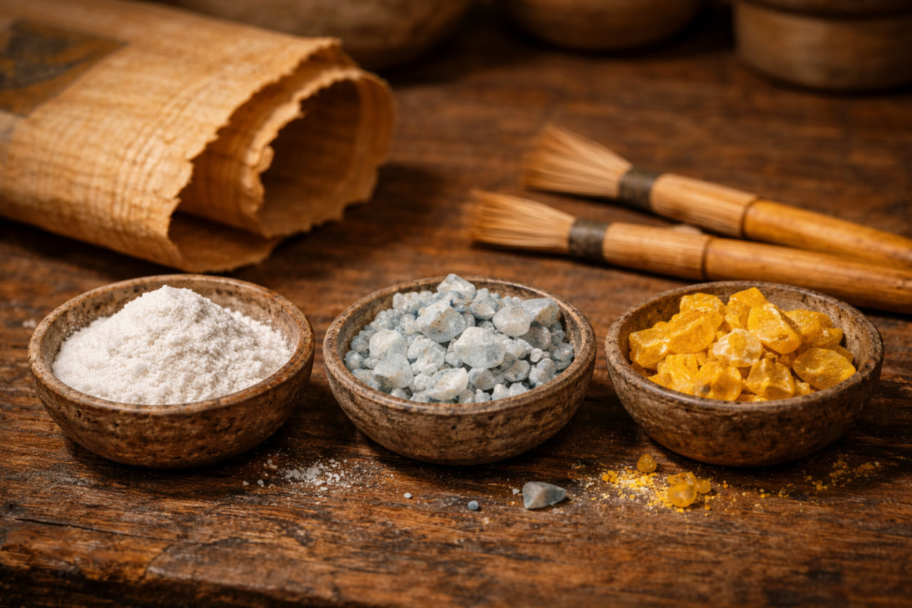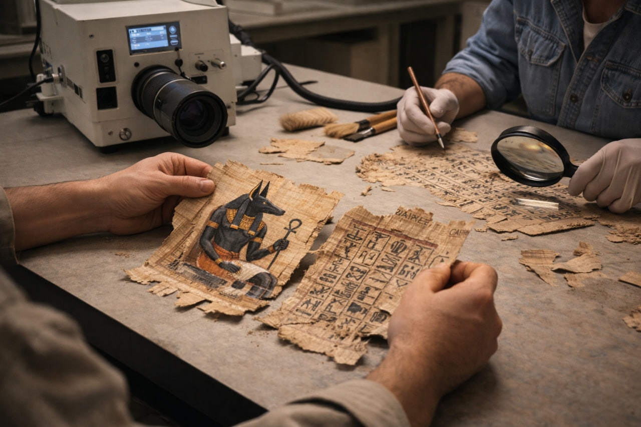 Antik Mısır'da hazırlanan bir Ölüler Kitabı papirüsünde yapılan analizler, sanatçıların hataları gizlemek için özel bir pigment karışımı kullandığını ortaya çıkardı. Kalsit, huntit ve zehirli orpiment içeren bu formül, çakal başlı bir tanrının çizimindeki hatayı kapatmak için kullanıldı