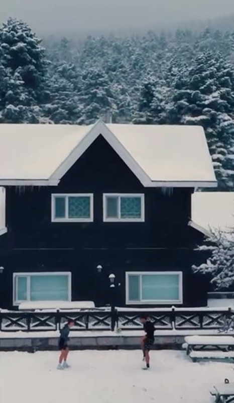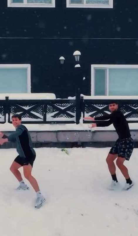 Güler, göl kenarında kar yağışı altında karla kaplı alanda arkadaşıyla birlikte top oynadığı anları sanal medya hesabından paylaştı.