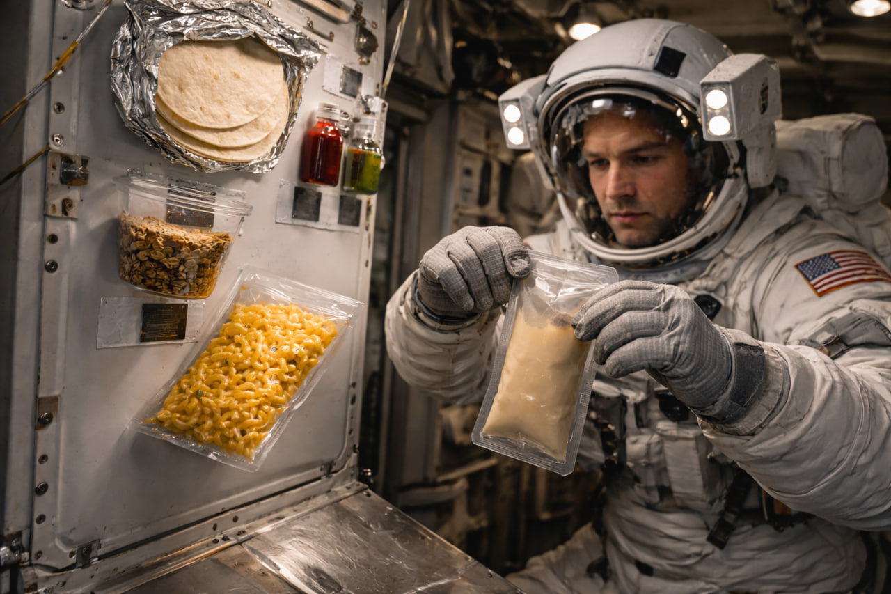 Uzay görevlerinde yemek hazırlamak her zaman zor oldu. Bunun temel nedeni kırıntı riski. Uzay aracında serbest kalan küçük parçalar, hassas elektronik sistemlere zarar verebilir veya kabin içinde dolaşarak astronotların sağlığını tehdit edebilir.