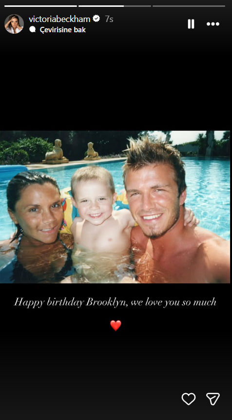 Victoria Beckham da benzer bir paylaşım yaptı. Geçmiş yıllara ait bir fotoğraf paylaşan ünlü tasarımcı, "İyi ki doğdun Brooklyn, seni çok seviyoruz" ifadelerini kullandı.