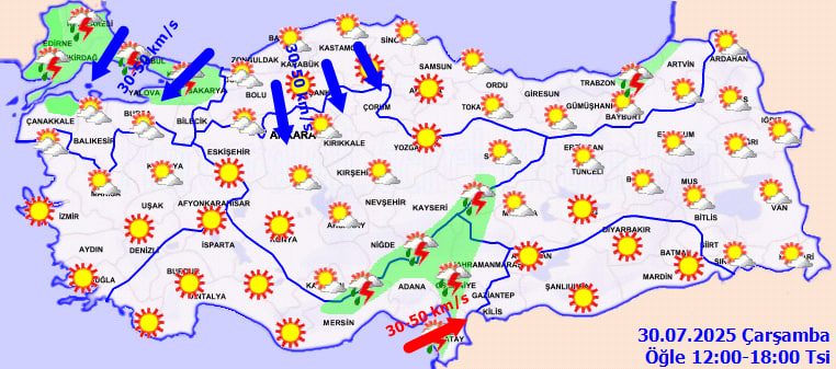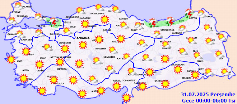 Meteoroloji'nin yayımladığı tahminlere göre; ülkemizin kuzey ve doğu bölgeleri yerel sağanak ve gök gürültülü yağışlar alırken, İstanbul başta olmak üzere Marmara Bölgesi'nde genel olarak az bulutlu ve açık hava hakim. Ancak Marmara'nın kuzeyinde ve Batı Karadeniz'in iç kesimlerinde kuvvetli rüzgar bekleniyor. Hava sıcaklıkları ise ülke genelinde mevsim normallerinin üstünde seyretmeye devam ediyor.