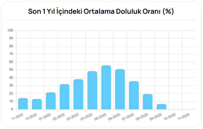 Yıl içinde baraj seviyelerinde belirgin değişimler gözlendi. Aylık ölçümlere göre en yüksek doluluk nisan ayında yüzde 81,23 olarak rapor edilirken, en düşük oran kasım ayında yüzde 18,52 seviyesine geriledi.