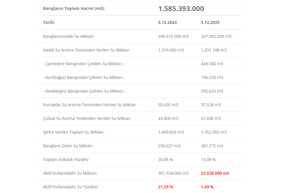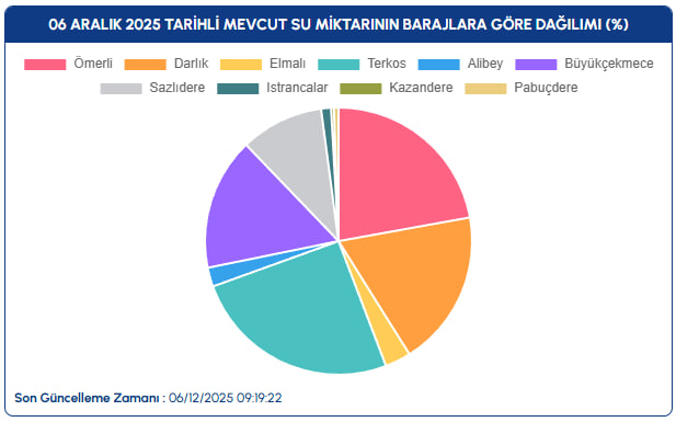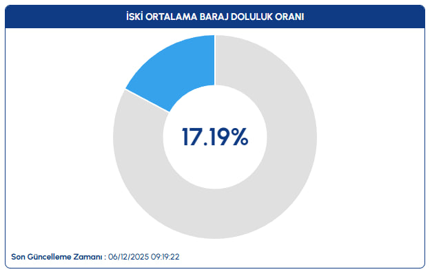 İSKİ'nin paylaştığı güncel verilere göre, 6 Aralık 2025 itibarıyla İstanbul genelindeki barajların ortalama doluluk oranı yüzde 17,19 olarak ölçüldü.