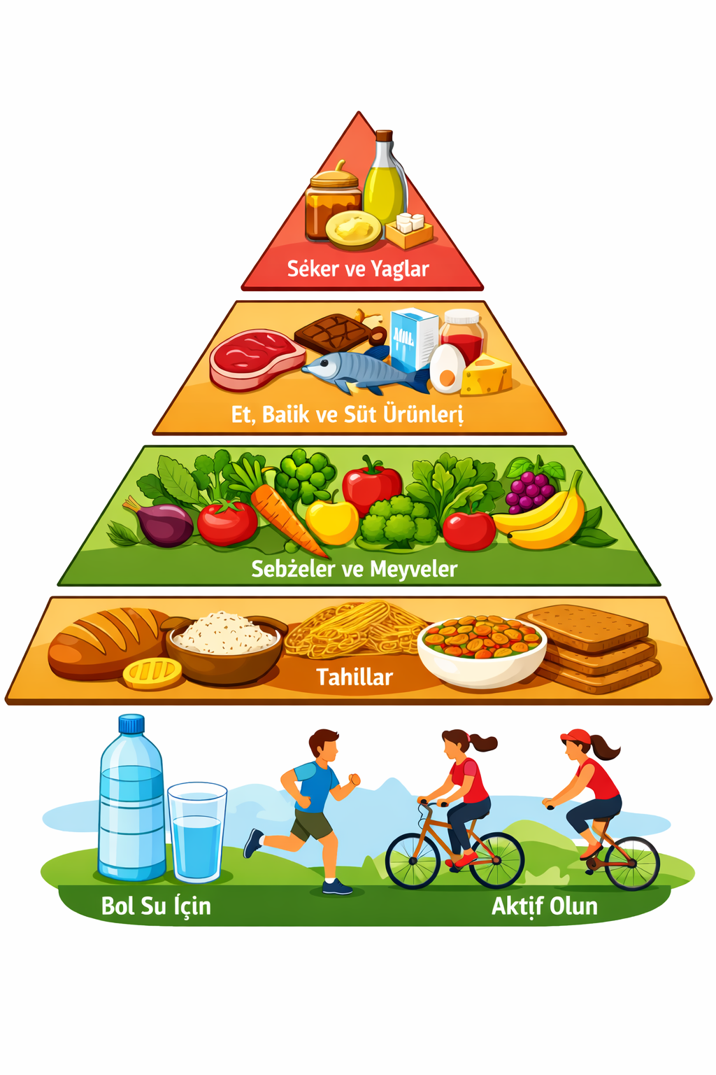 Besin piramidi, sağlıklı bir yaşam için hangi yiyeceklerin ne ölçüde tüketilmesi gerektiğini gösteren görsel bir beslenme haritasıdır. Amaç, günlük beslenmeyi tek bir tabağa değil, dengeli bir düzene oturtmaktır.