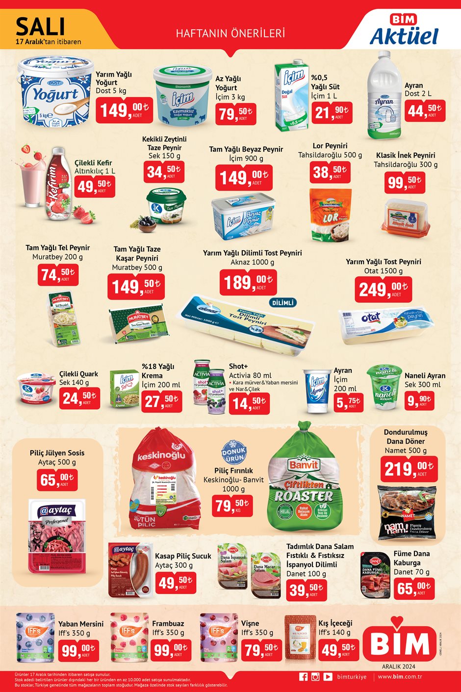 BİM 17-18-20 Aralık aktüel kataloğu yayımlandı! İndirimler peş peşe sıralandı: Tam yağlı yoğurt, bütün tavuk, jülyen sosis...