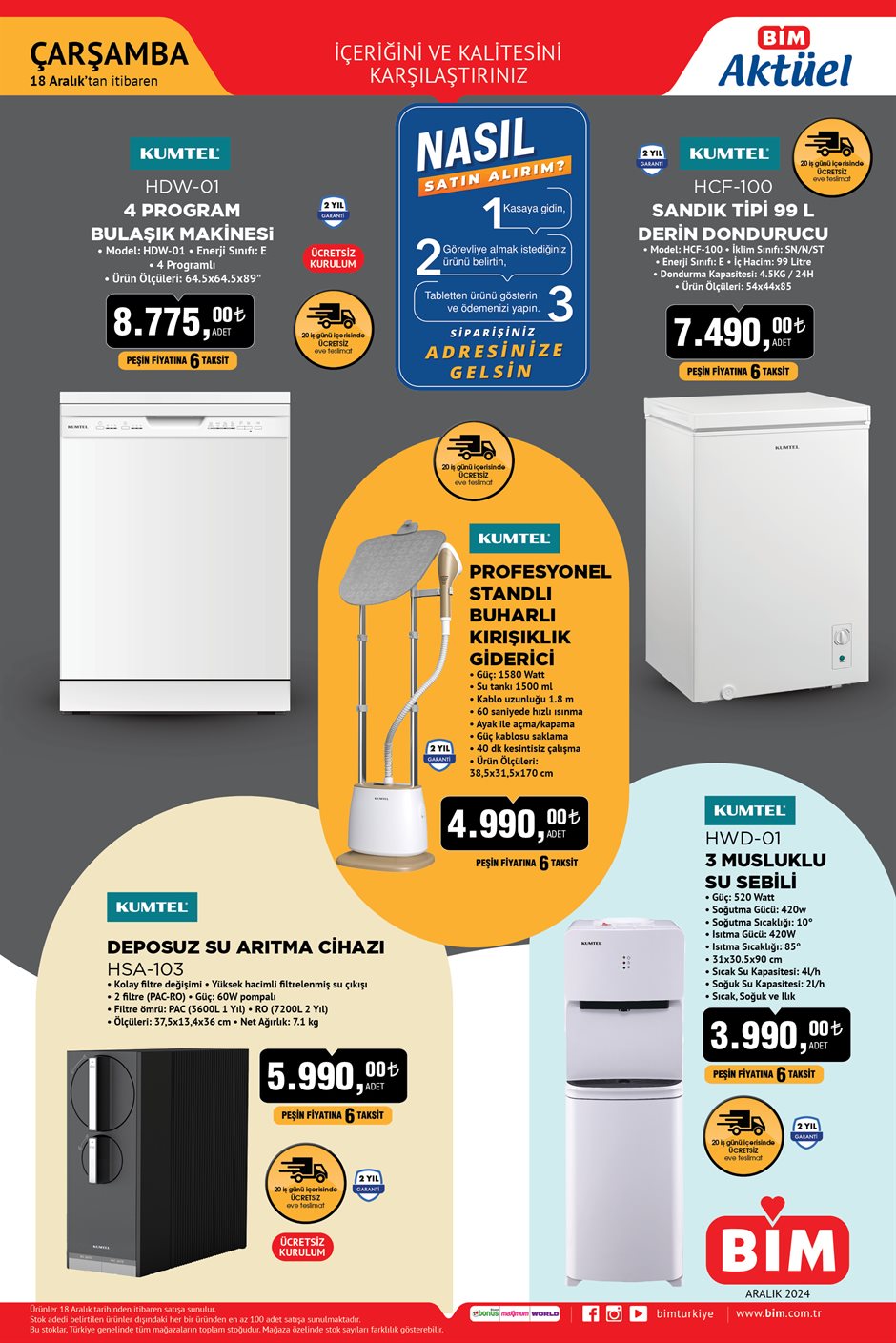 BİM, yeni haftanın aktüel kataloglarını yayımladı. Her hafta Salı ve Cuma günleri raflarda yerini alan ve sadece belirli bir süreyle satışta olan ürünler, aktüel kataloglarla müşterilere sunuluyor. 17-20 Aralık tarihleri arasında BİM mağazalarında satışa sunulacak indirimli ürünler, geniş bir yelpazeye sahip. BİM'in bu haftaki aktüel kataloğunda, gıda, temizlik, elektronik gibi birçok kategoriden cazip fırsatlar bulunuyor. İşte 17-20 Aralık tarihleri arasında BİM mağazalarında bulabileceğiniz ürünlerin tam listesi…
