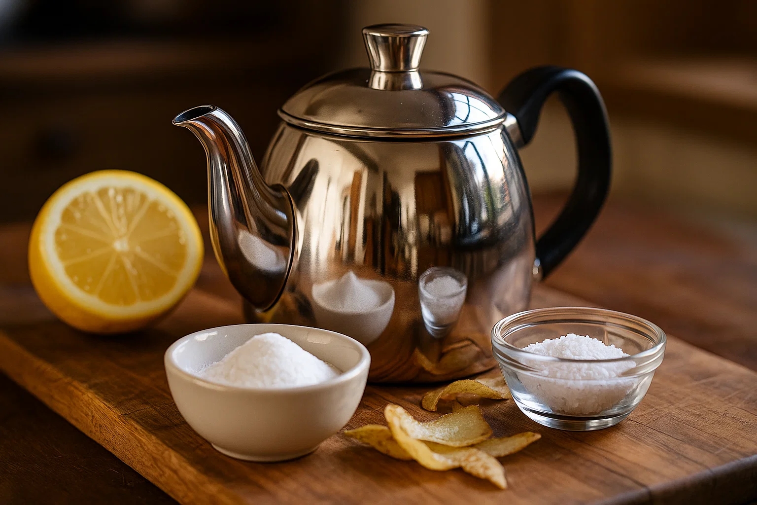 Patates kabukları, içerdiği nişasta ve enzimler sayesinde kireç tabakasını yumuşatarak kolayca temizlenmesini sağlar. Çaydanlığa eklenen patates kabukları suyla birlikte kaynatıldığında, çaydanlığınız doğal ve ekonomik bir yöntemle tertemiz olur