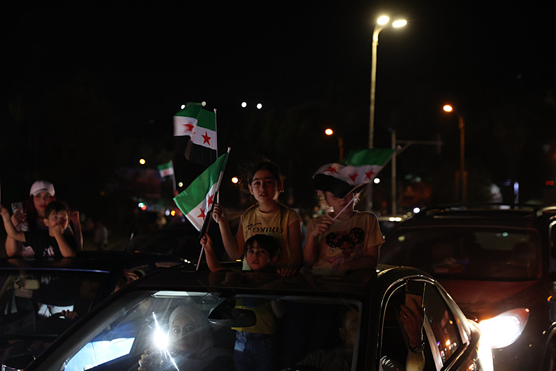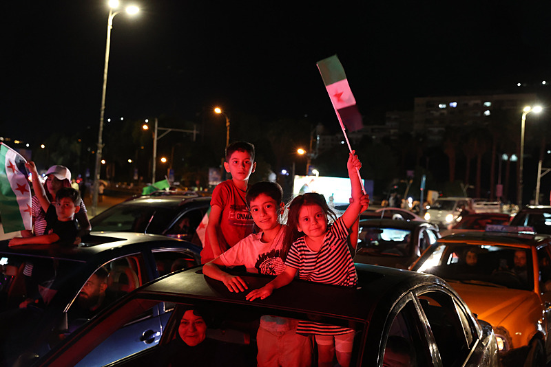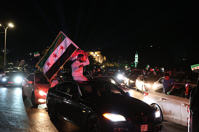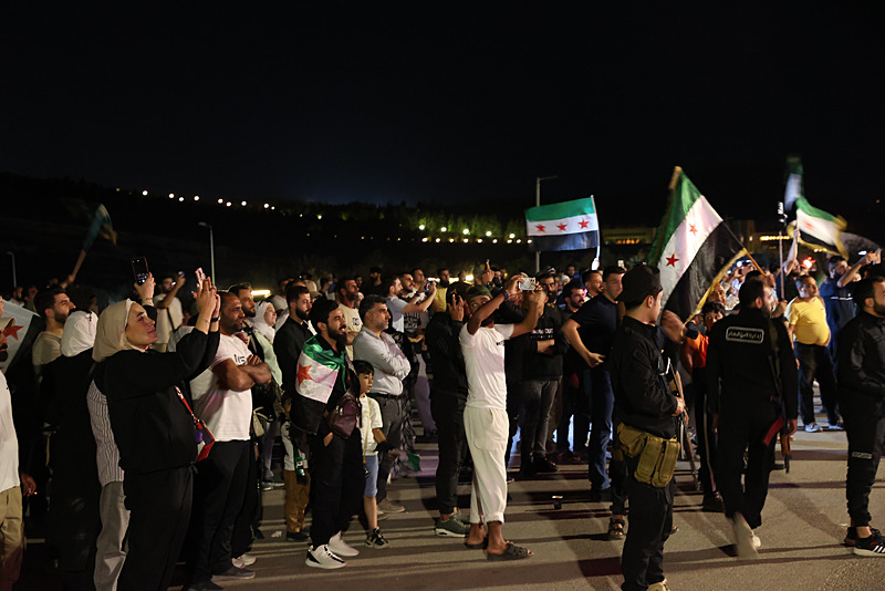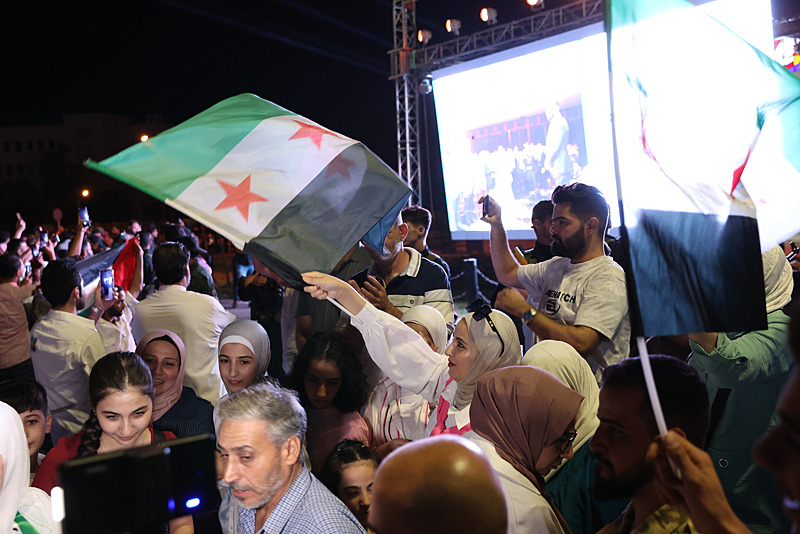 Cumhurbaşkanı Şara'nın konuşması sırasında, başkent Şam'daki Emevi Meydanı'nda toplanan Suriyeliler kutlama yaptı.