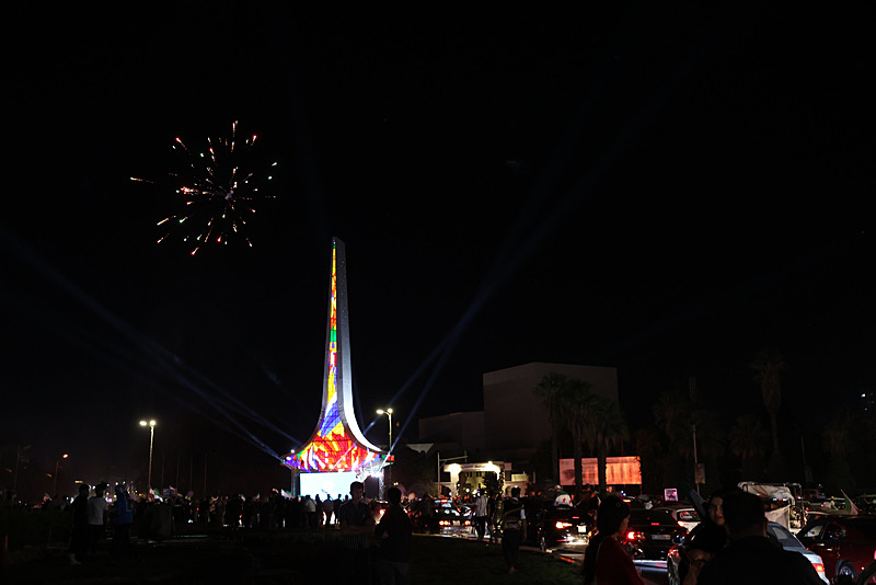 Ellerinde bayraklar taşıyan vatandaşlar, kurulan dev ekranlardan Şara'nın konuşmasını izleyerek coşkuya ortak oldu.