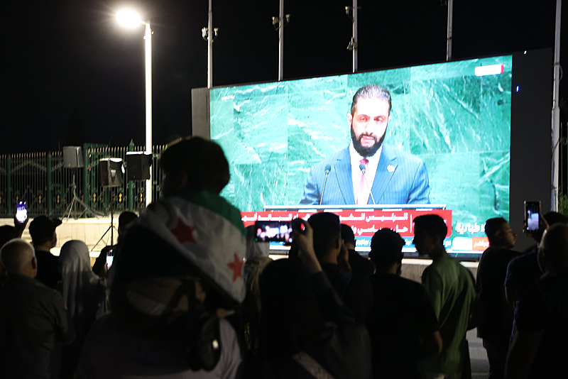 Suriye halkı, Cumhurbaşkanı Şara'nın, Birleşmiş Milletler (BM) Genel Kurulu'ndaki hitabını dinlemek için başkent Şam ve Deyrizor kentindeki meydanlarda bir araya geldi.