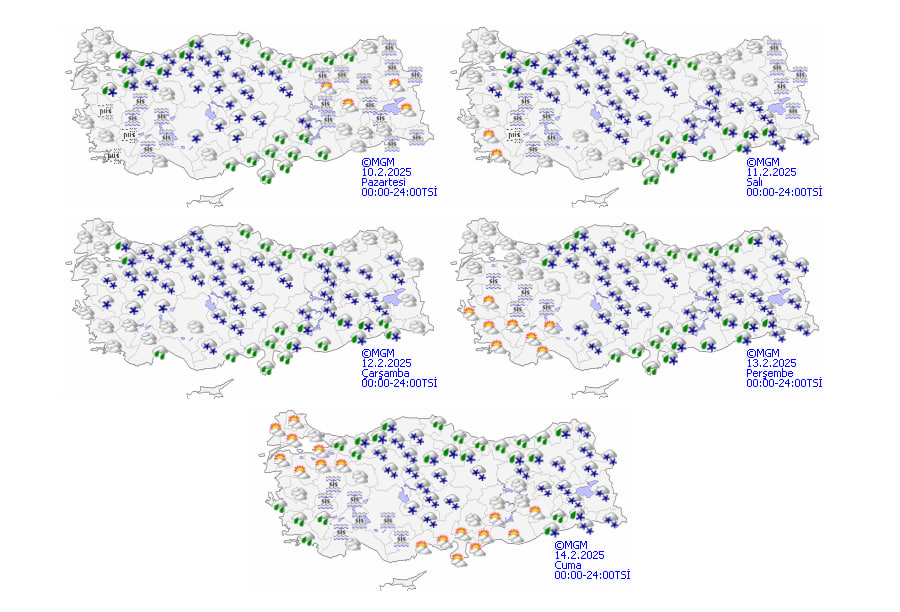 11.02.2025 Salı günü il genelinde karla karışık yağmur ve yüksek kesimlerde kar şeklinde devam eden yağışların, Salı günü akşam ilk saatlerden, Çarşamba (12.02.2024) öğle saatlerine kadar il genelinde ağırlıklı olarak kar yağışı şeklinde olacağı tahmin edilmektedir."