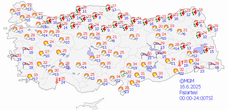 Meteoroloji Genel Müdürlüğü, 16 Haziran Pazartesi gününden itibaren geçerli olan yeni haftanın hava durumu raporunu yayımladı. Yurdun kuzey ve doğu kesimlerinde sağanak yağışlar beklenirken çarşamba gününden itibaren sıcaklıkların artacağı bildirildi. İşte il il hava durumu detayları ve sıcaklık tahminleri...