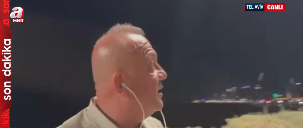 Canlı yayında İran-İsrail savaşı! A Haber Tel Aviv'den görüntüledi: Füzelerden biri havada böyle imha edildi