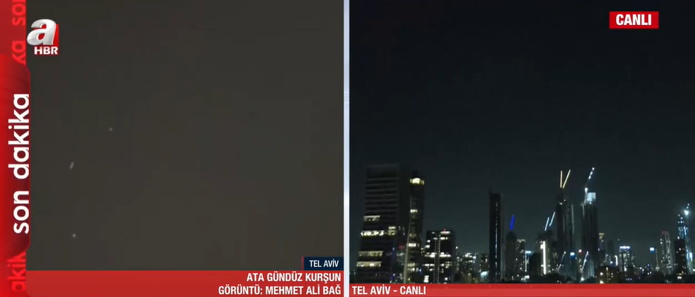 Ata Gündüz Kurşun, "Tel Aviv'in dört bir yanında alarm yükseliyor. Bir tanesi havada imha edildi." dedi.