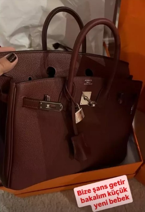 Ünlü şarkıcı, dünyaca ünlü bir markaya ait bordo renkli yeni çantasını sosyal medya hesabından "Küçük yeni bebek, bize şans getir bakalım" notuyla takipçileriyle paylaştı.