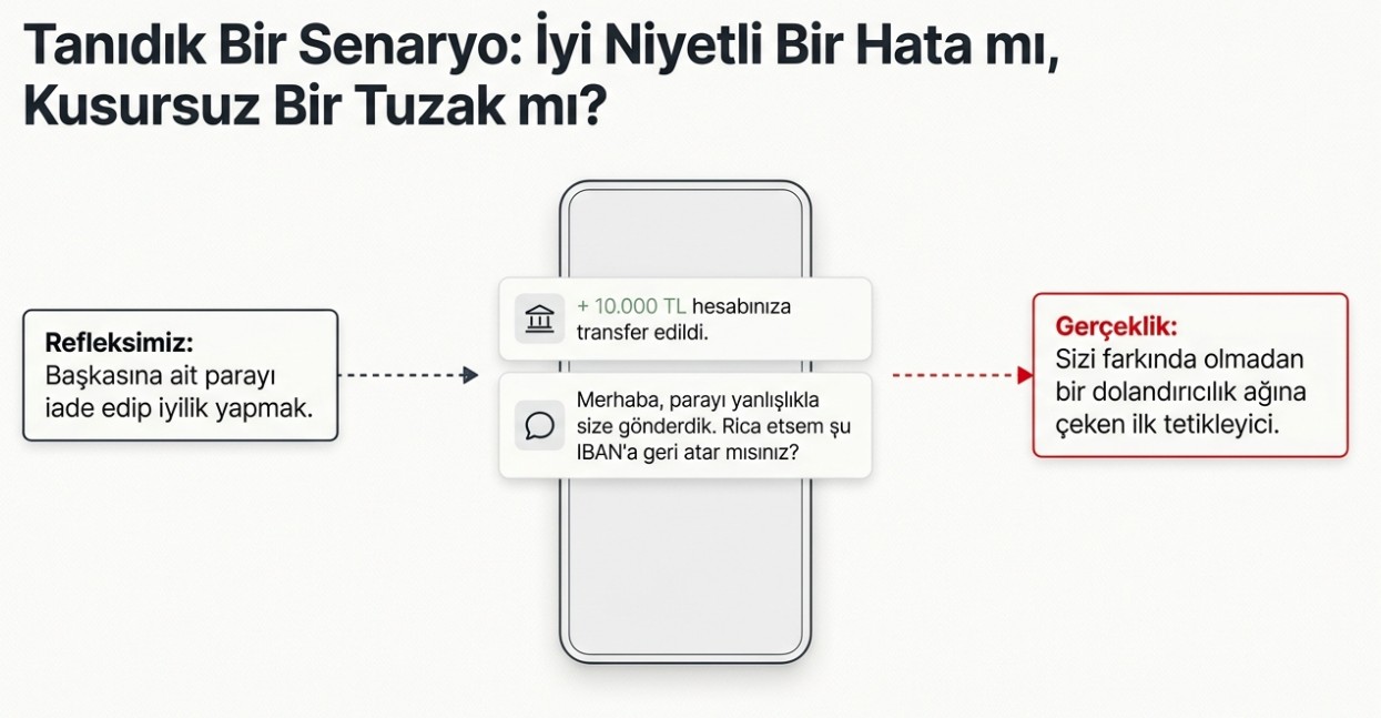 Dijital bankacılığın hızı, dolandırıcılar için yeni bir oyun alanı açtı. Son dönemde artış gösteren "yanlışlıkla gönderilen para" yöntemi, masum vatandaşları farkında olmadan birer suç şüphelisine dönüştürüyor. Uzmanlar uyarıyor: İyi niyetle yaptığınız bir iade işlemi, hayatınızı karartabilir.