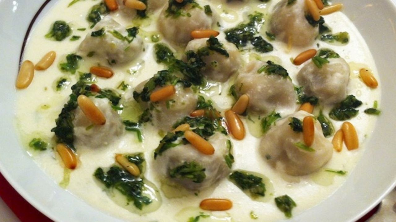 Kökeni İran mutfağına dayanan bu yemekte, kuzu eti ve soğanla doldurulmuş minik mantılar, nane ve sarımsakla tatlandırılmış yoğurt sosunda pişirilir. Orta Doğu'da yaygın olan bu yemek, genellikle baharatlarla zenginleştirilerek sıcak servis edilir.