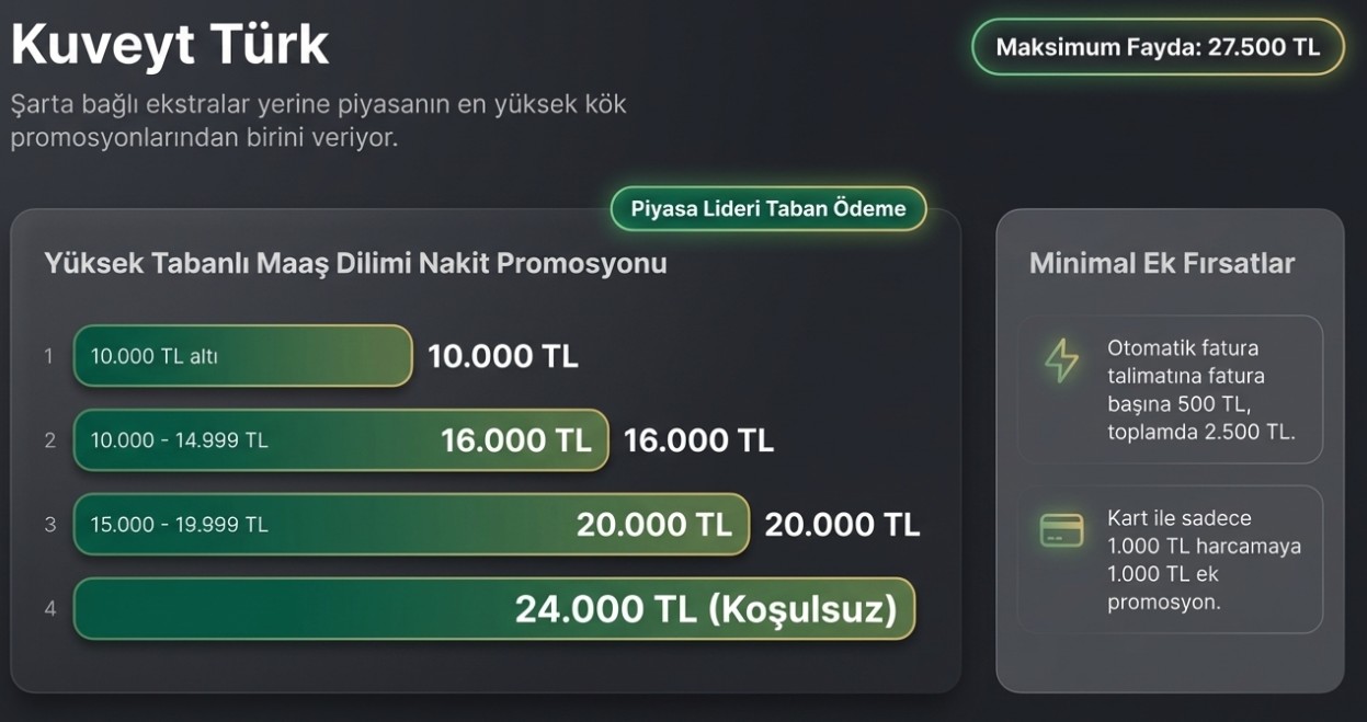 Maaş aralıklarına göre verilen promosyon tutarları şu şekilde: