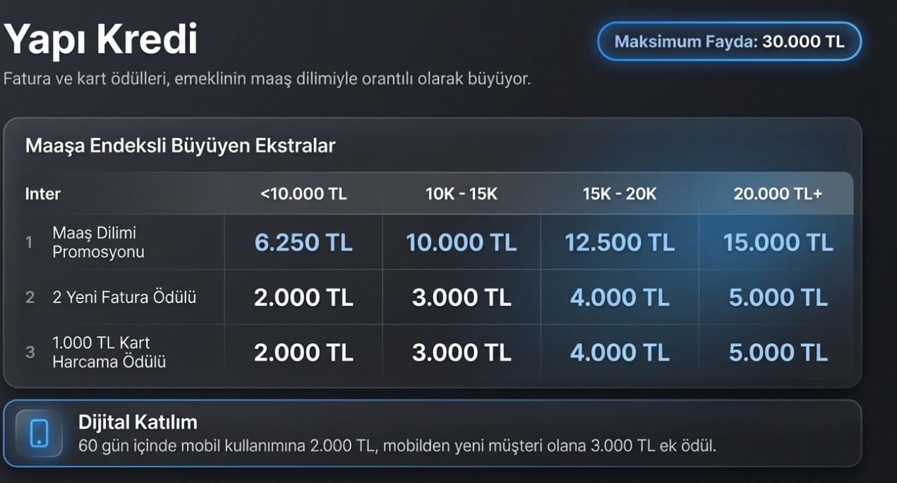 Promosyon ödemesine ek olarak kampanya kapsamında çeşitli şartları yerine getiren emeklilere 50.000 liraya varan nakit ödül imkanı sunuluyor.