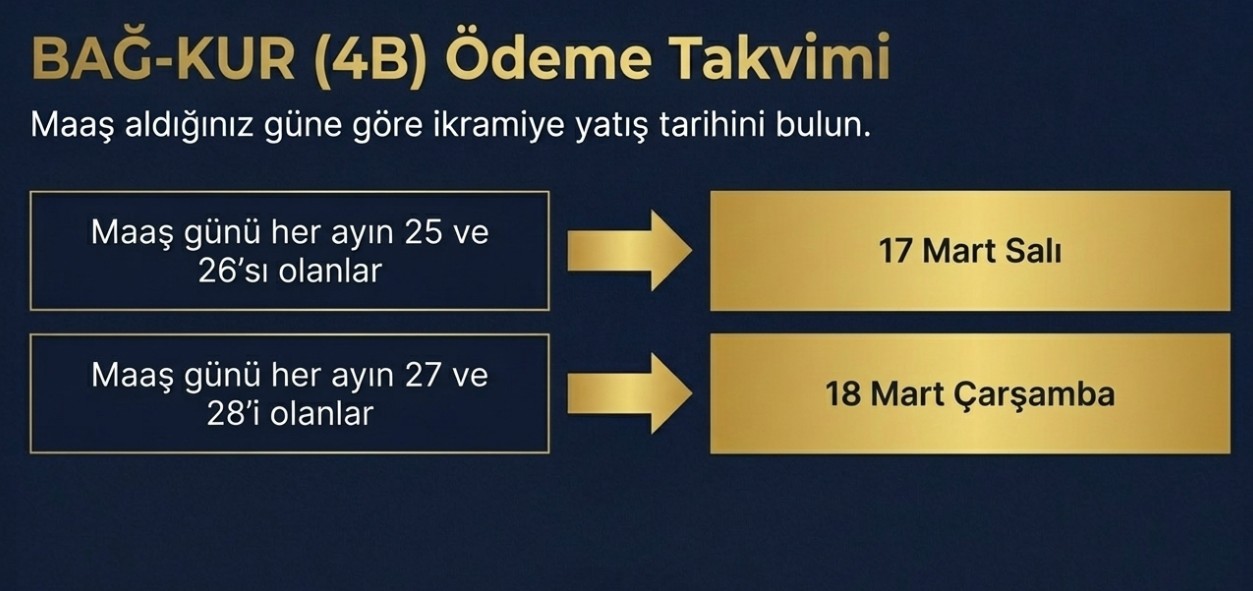 Bağ-Kur (4B) kapsamında emekli olan vatandaşlar için ödeme takvimi ise farklı tarihlerde uygulanıyor.