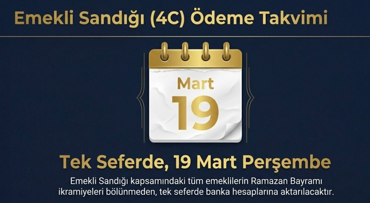 Emekli Sandığı kapsamındaki emekliler için bayram ikramiyesi ödemesi tek seferde gerçekleştirilecek. Bu kapsamdaki emeklilerin Ramazan Bayramı ikramiyeleri 19 Mart Perşembe günü banka hesaplarına aktarılacak.