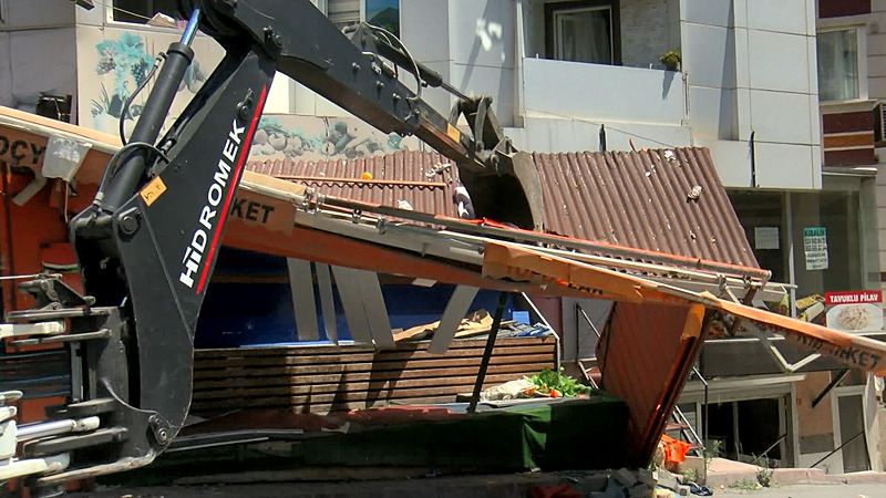Korku dolu olay, bugün saat 12.00 sıralarında Mehmet Akif Mahallesi 1828. Sokak'ta meydana geldi. Edinilen bilgiye göre, kaldırımı işgal ettiği gerekçesiyle marketin manav bölümüne yıkım kararı verildi.