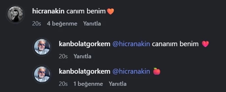 Merhum oyuncunun eşi Hicran Akın'ın paylaşımına verdiği yanıt da dikkat çekti. Akın'ın "Canım benim" sözlerine Arslan, yaklaşık 20 saat önce "Cananım benim" diyerek karşılık vermişti.