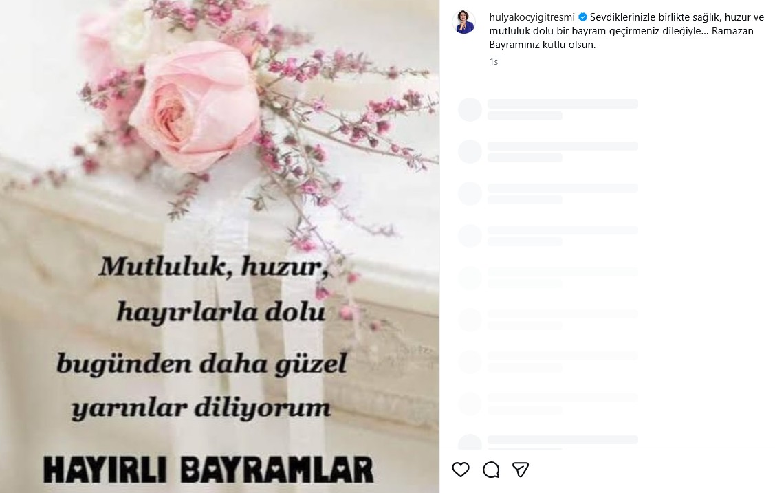 "Sevdiklerinizle birlikte sağlık, huzur ve mutluluk dolu bir bayram geçirmeniz dileğiyle… Ramazan Bayramınız kutlu olsun"