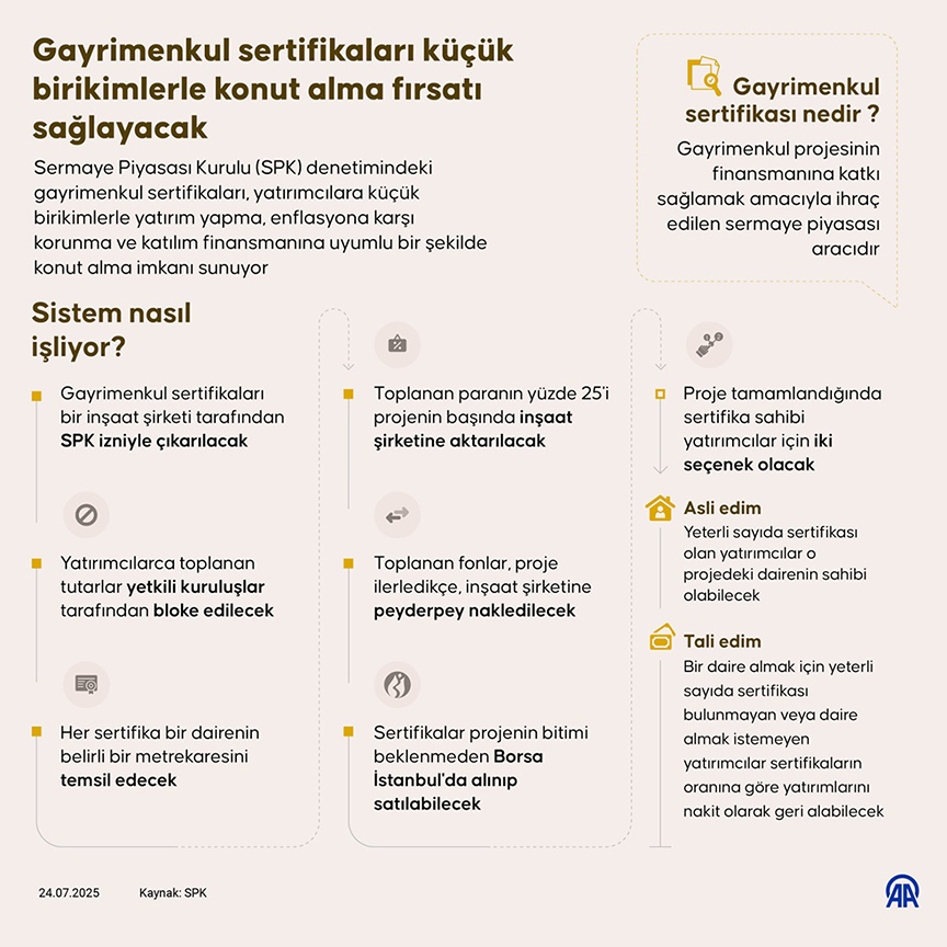 Emlak Konut Gayrimenkul Yatırım Ortaklığı (GYO), TOKİ ve Çevre, Şehircilik ve İklim Değişikliği Bakanlığı koordinasyonunda hayata geçirilen Gayrimenkul Sertifikası modelini yatırımcılara sundu. İstanbul Başakşehir'deki Damla Kent Projesi ile uygulamaya geçen bu sistem, peşinat, taksit ya da faiz yükü olmadan konut sahibi olma imkanı sunuyor. Peki 1 lot ne kadar, daire sahibi olmak için kaç sertifika gerekiyor?