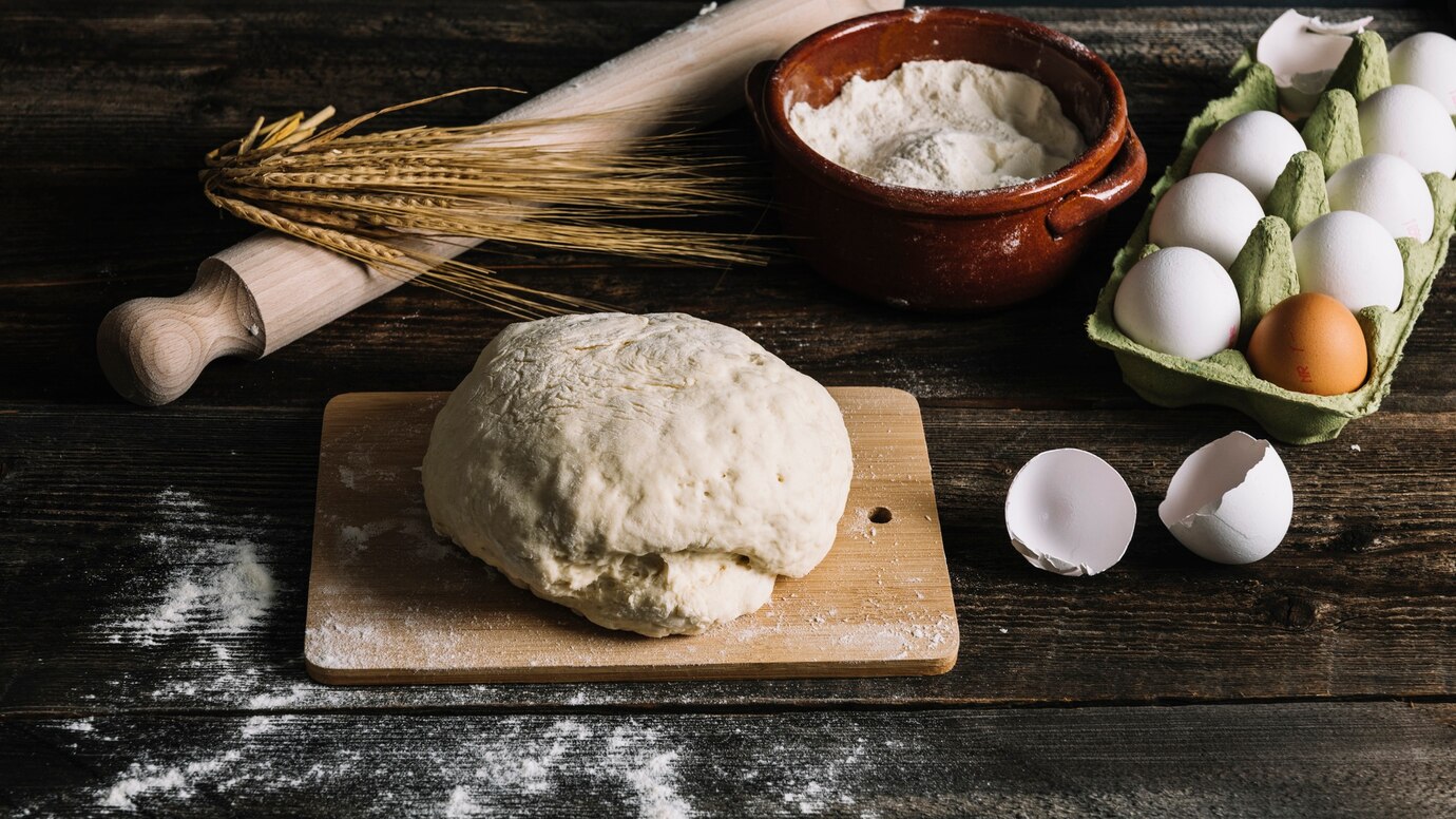 Üzerini temiz bir bezle örtüp 1-2 saat mayalanmaya bırakın. (Eğer daha lezzetli ve hafif bir pide isterseniz, hamuru bir gece önceden yoğurup buzdolabında 14-16 saat dinlendirebilirsiniz.)