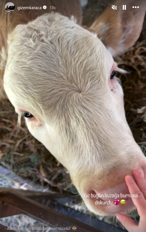 Doğada vakit geçirmeyi seven anne-kızdan yeni bir video geldi. Karaca, kızı Yaz'ın bir buzağıyı sevdiği anları videoya alarak şu notu düştü: