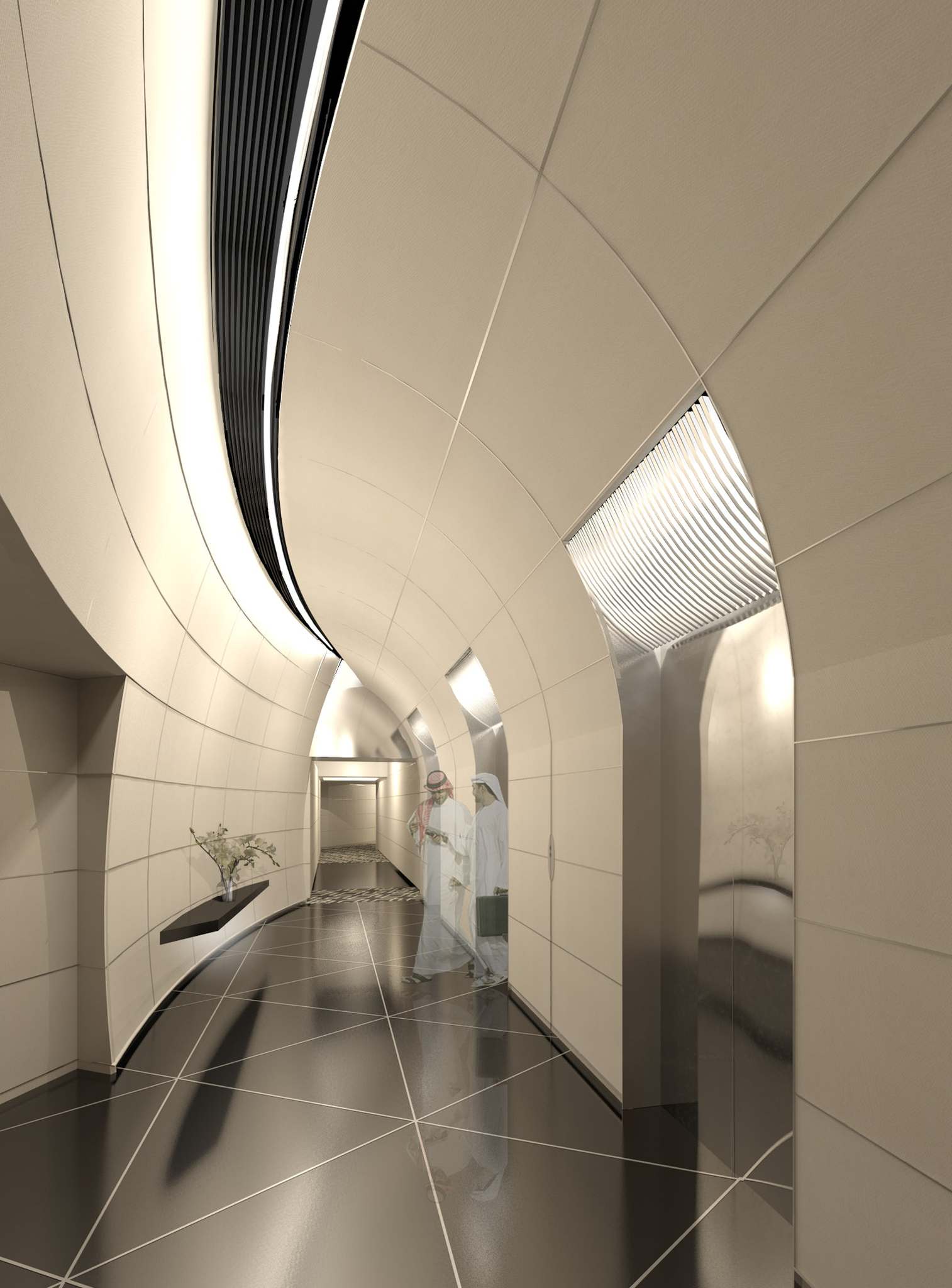 Kulenin yukarıya doğru daralan formu, hem en üst noktada rüzgar etkisini azaltmak hem de beton çekirdeğin boyutunu küçülterek üst katlardaki kullanılabilir alanı artırmak amacıyla planlandı.