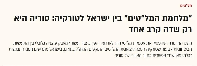 "Türkiye ciddi bir rakip ve iki ülke arasında Suriye'de bir çarpışma, yanlışlıkla bile olsa, yaşanabilir. Türkler esas olarak kuzey Suriye'de; İsrail ise daha çok güneyde faaliyet gösteriyor. Bu nedenle olası bir çarpışma olursa, muhtemelen hava sahasında yaşanır."