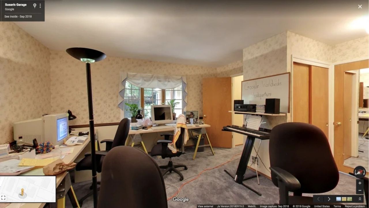 Google tarafından yayımlanan makaleye göre, Google'ın doğuşu bir garajda gerçekleşti. Sun Microsystems'in kurucu ortağı Andy Bechtolsheim'in 1998'de verdiği 100 bin dolarlık ilk yatırım, Google Inc.'in resmi olarak hayata geçmesini sağladı. İlk ofisleri, YouTube'un ileride CEO'su olacak Susan Wojcicki'nin garajıydı.