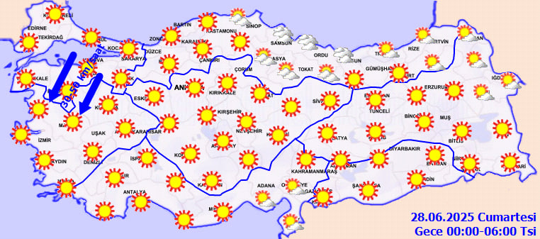Meteoroloji Genel Müdürlüğü'nün 27 Haziran 2025 tarihli tahminlerine göre, Türkiye genelinde yağış beklenmiyor. Yurt genelinde gökyüzü büyük oranda açık ve az bulutlu olacak. Ancak sıcaklık değerleri dikkat çekici seviyelerde. Yetkililer, mevsim normallerinin üzerinde seyreden sıcaklıklara karşı özellikle öğle saatlerinde dikkatli olunması uyarısında bulunuyor.